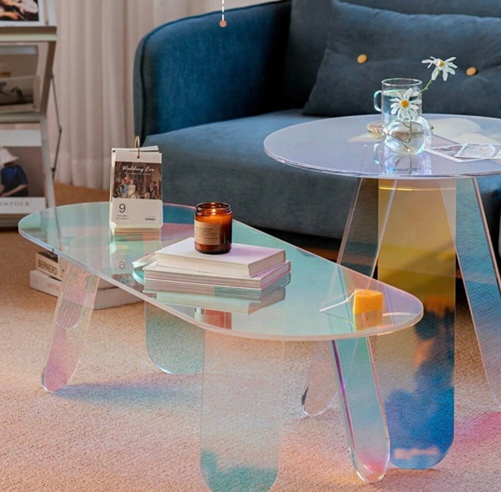 Aookmiya Iridescent Transparent Acrylic Side Table Display Designer Ro