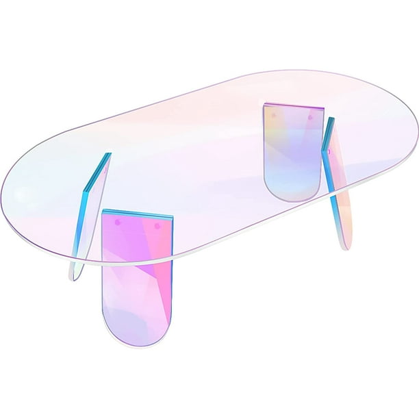 Acrylic Rainbow Color Coffee Table Iridescent Glass End Round Side Modern Accent Ebay